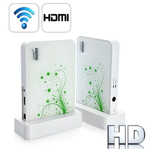 [if Wires be gone, because one cable box and one cable line is all you need with the Wireless HDMI Extender (Transmitter Receiver System). Wirelessly streaming high-definition video and audio to any HDMI-supported source in your house, enhance your media entertainment experience with wireless HD that works. Find it impossible to run a TV cable to your bedroom? Forced to buy another cable box JUST for your kitchen? Well, the solution is easier (and cheaper) than ever with the Wireless HDMI Extender (Transmitter Receiver System)! Here's how it works: 1) Connect the wireless transmitter to your main audio/video source using the HDMI cable. 2) Connect the wireless receiver to any TV in any room using another HDMI cable. 3) That's it, you're done! Enjoy clear, high-definition wireless streaming! This Wireless HDMI Extender works up to 30 meters and will offer a maximum 1600 x 1200 resolution live stream to another room. Connect this to your TV set-top box (STB), DVD player, Playstation 3, Xbox 360, or any other HDMI output devices and view it from anywhere in the house!]